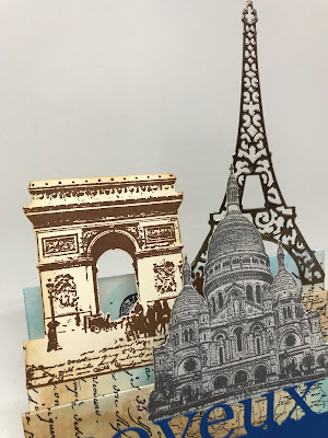 My daughter will be studying in France this summer, so I thought it only appropriate that her birthday card celebrate her upcoming adventure. Since I love all things France myself, I had quite a stash of French-themed stamps and diecuts, so I decided to make her an accordion card of Paris.